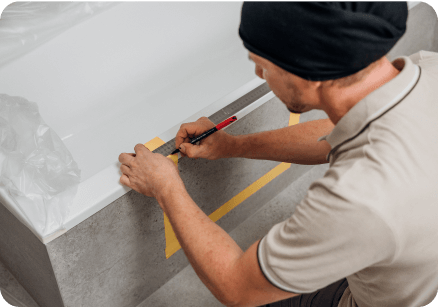 Řezání probíhá s maximální přesností. Nedochází k poškození vany ani obkladů. Během řezání je vana pečlivě zakryta několika vrstvami obalového materiálu.